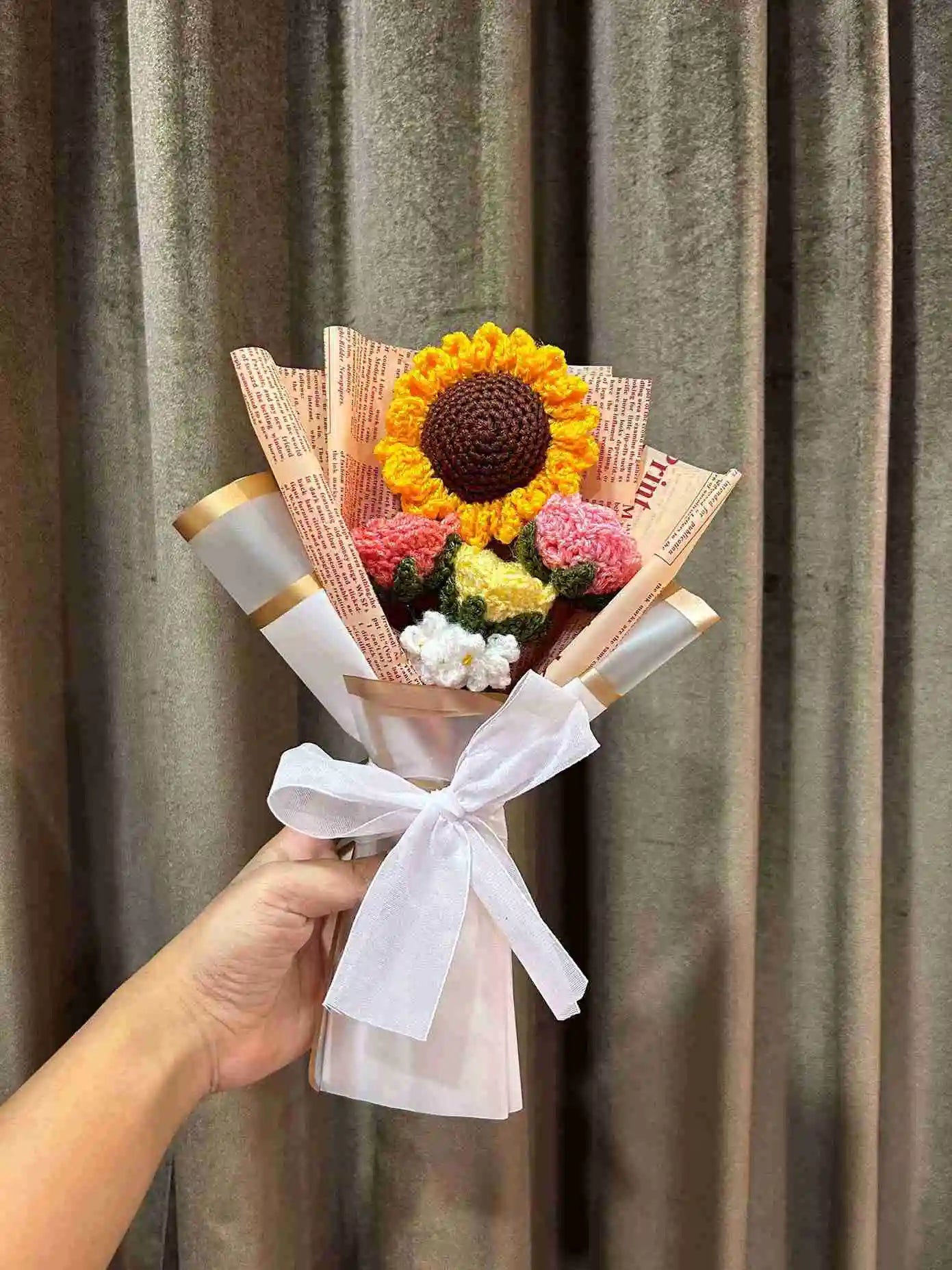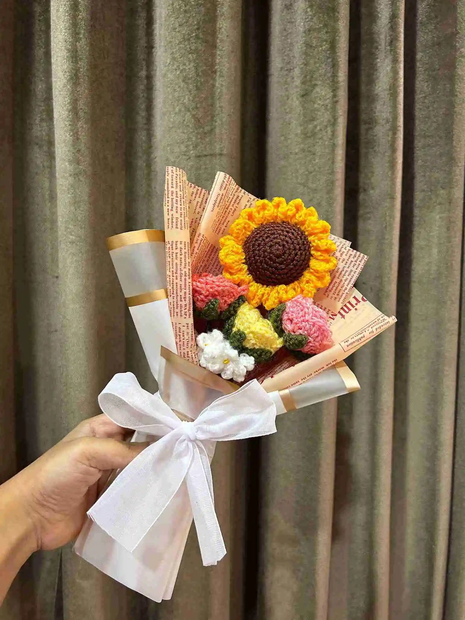 Our elegant crochet flower bouquets are the ideal gift for any occasion. Each bouquet is skillfully handcrafted with high-quality wool, providing a soft and long-lasting touch. Encased in premium packaging, these bouquets are perfect for birthdays, anniversaries, weddings, or to bring a smile to someone's face. Add a touch of elegance and charm with our timeless crochet flowers.