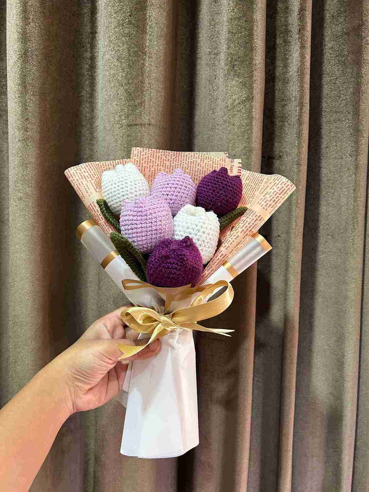 Our elegant crochet flower bouquets are the ideal gift for any occasion. Each bouquet is skillfully handcrafted with high-quality wool, providing a soft and long-lasting touch. Encased in premium packaging, these bouquets are perfect for birthdays, anniversaries, weddings, or to bring a smile to someone's face. Add a touch of elegance and charm with our timeless crochet flowers.