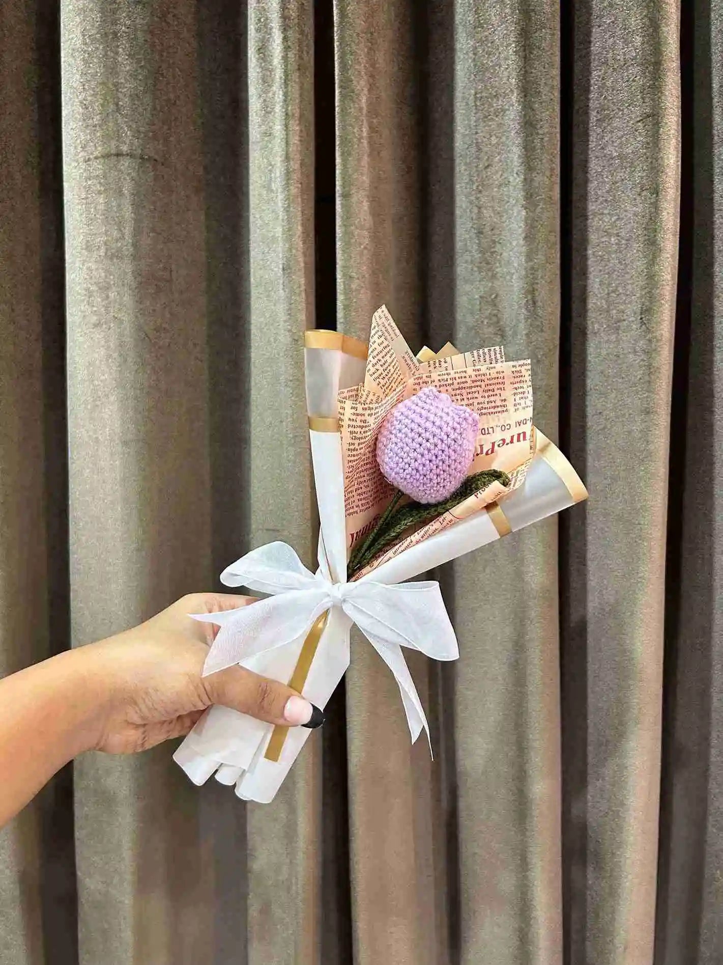 - Includes 1 handcrafted crochet tulip with green leaf