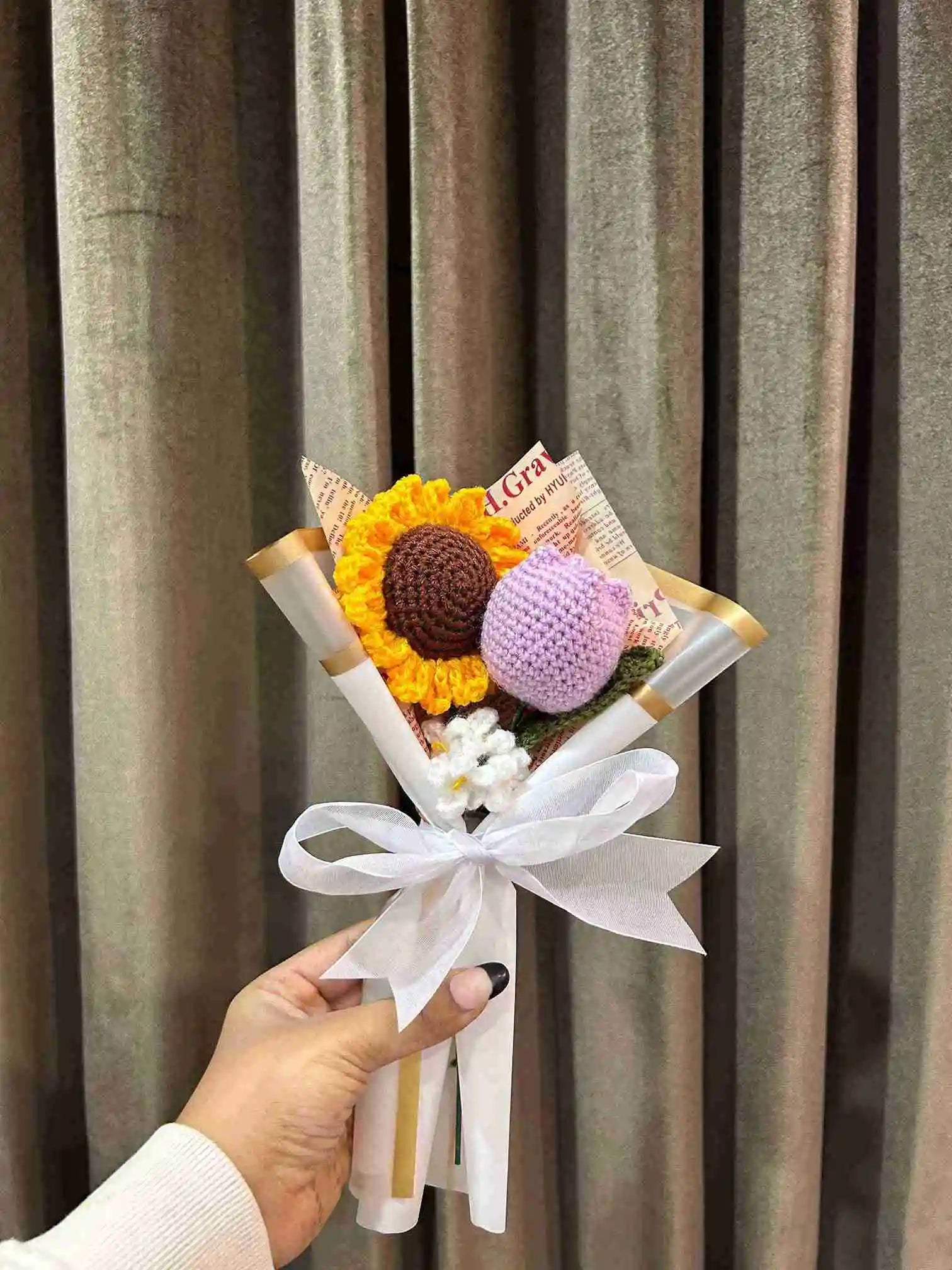 Our elegant crochet flower bouquets are the ideal gift for any occasion. Each bouquet is skillfully handcrafted with high-quality wool, providing a soft and long-lasting touch. Encased in premium packaging, these bouquets are perfect for birthdays, anniversaries, weddings, or to bring a smile to someone's face. Add a touch of elegance and charm with our timeless crochet flowers.